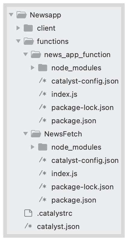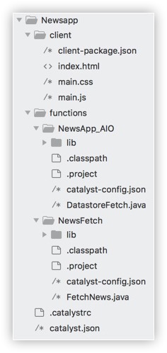 This is the structure of the NewsApp project's directory, if the Advanced I/O function is of the Node.js platform.
