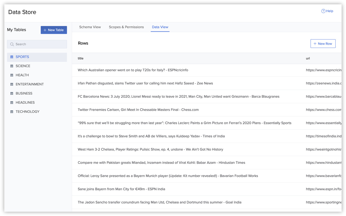 You can also open your Catalyst console to check the data populated in the tables in the Data Store. Click on a table's name in the Data Store, and click Data View to check the records.