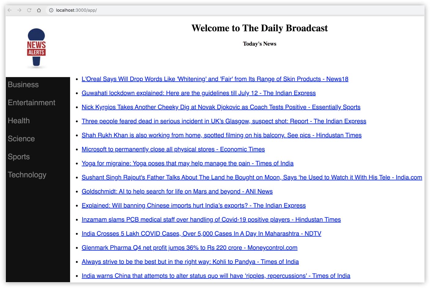 The news application displays the general news headlines in the index page. You can click a topic on the left to check the latest headlines in that category. You can open the original news article by clicking on a headline.