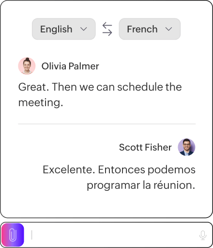 Break language barriers instantly. Translate messages in real time so your global team can communicate effortlessly.