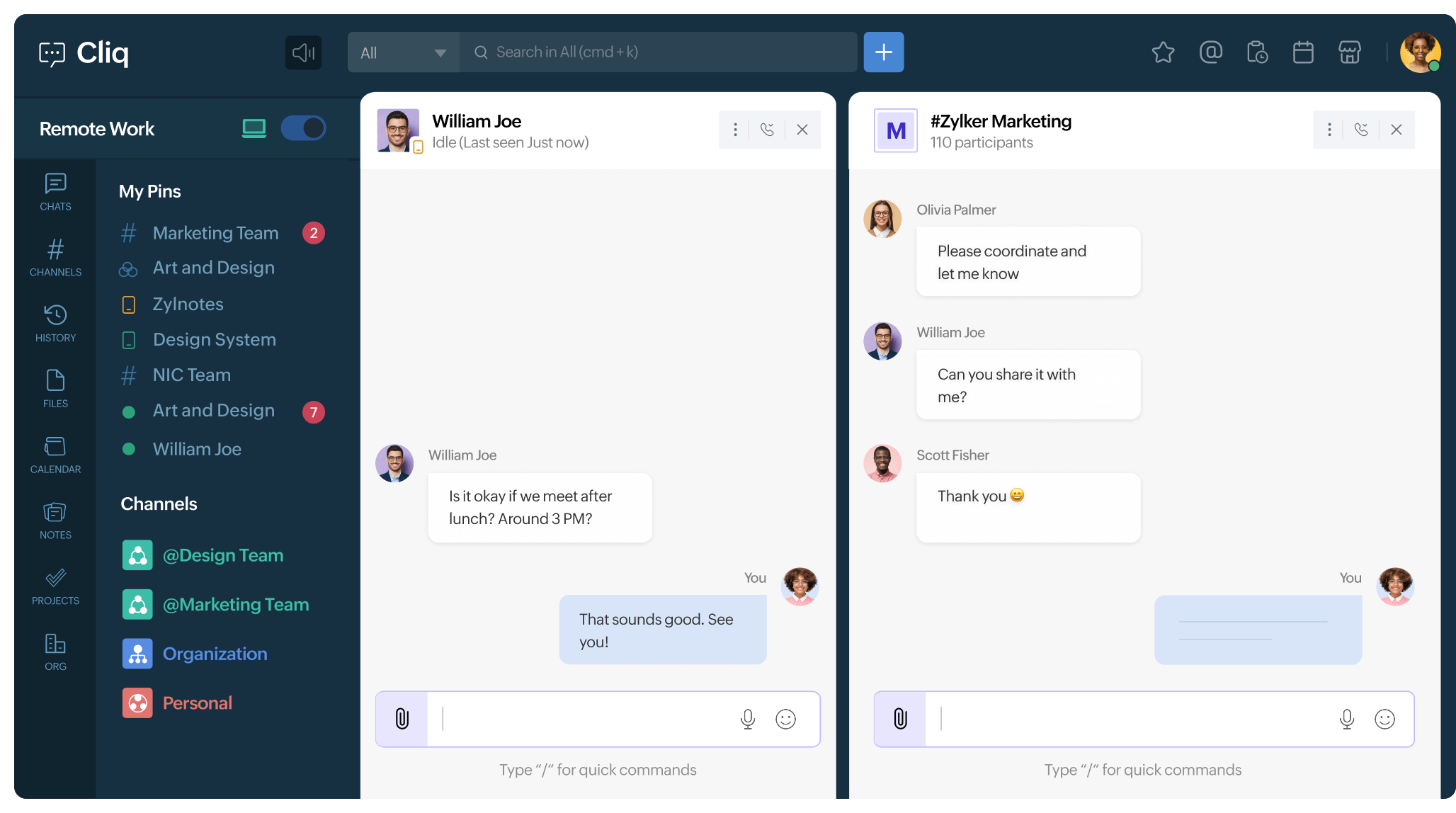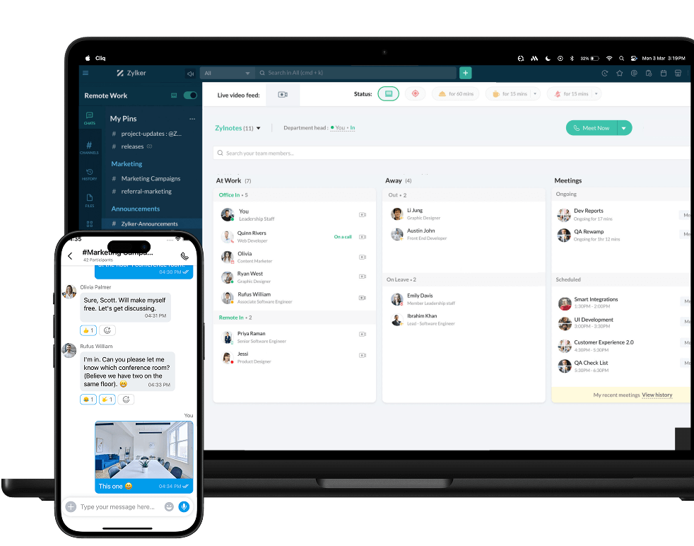 Bring your entire office inside Cliq, get a comprehensive view of your colleagues' activities, and collaborate like they were seated right next to you.