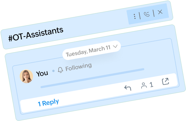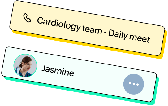 Bring your entire organization on board through dedicated channels for roles (doctors, nurses, administrative staff) and departments (cardiology, neurology, gynaecology) and exchange information like incoming patient alerts and shift updates via one platform.