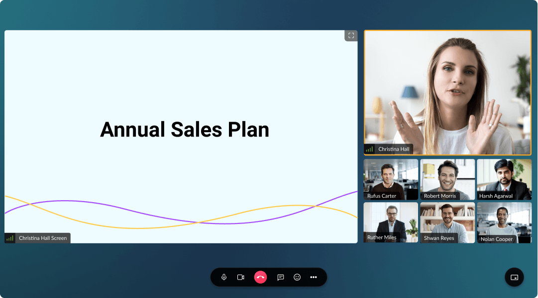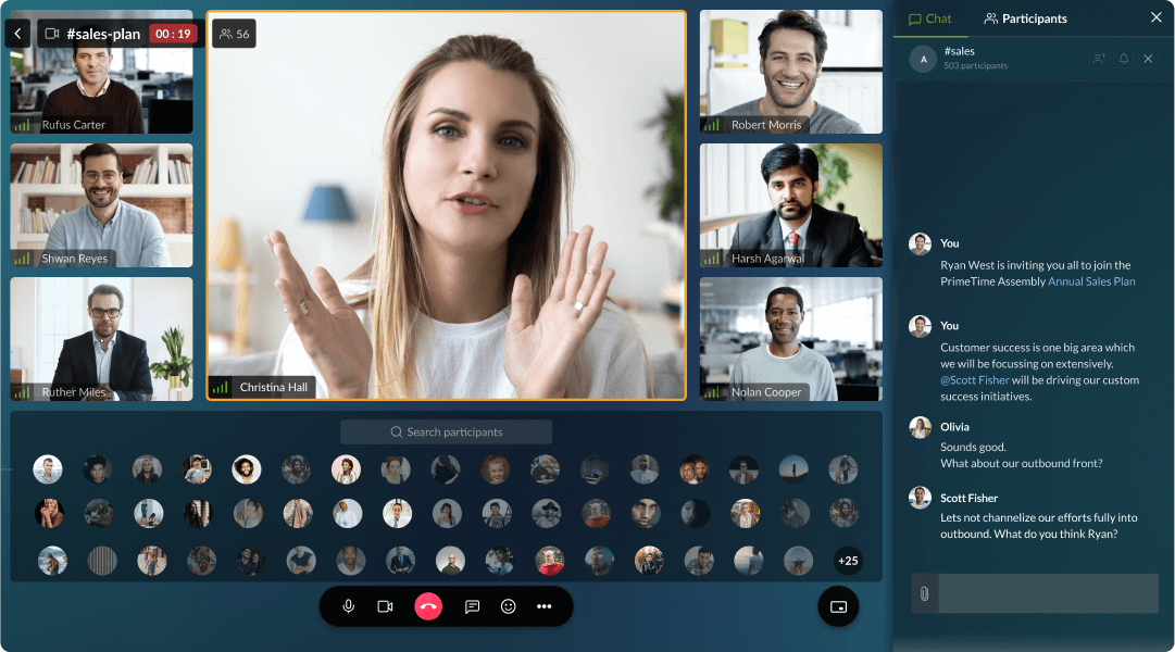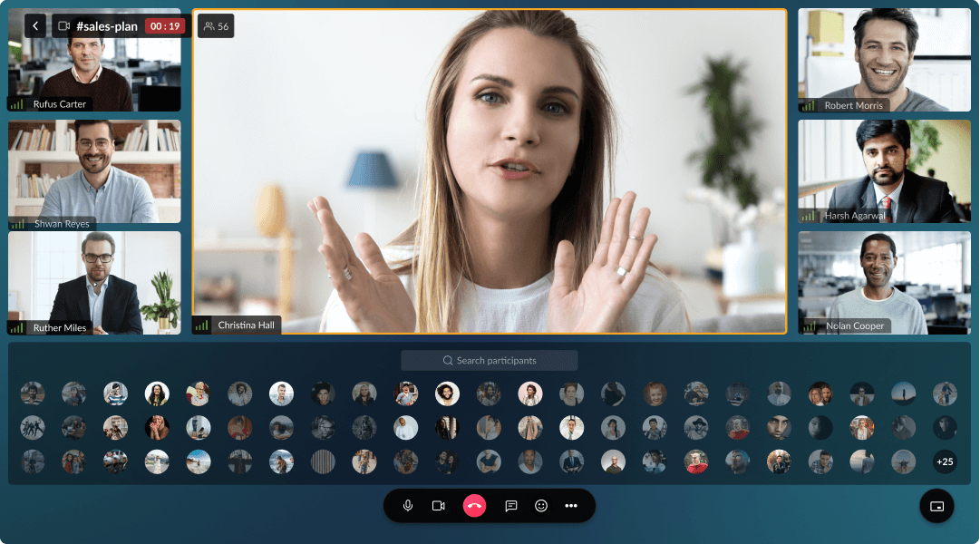 Visually connect with your team anytime, anywhere, with the help of Cliq group video call. The Cliq group video call allows you to connect with up to 1000 members at a time and has a wide range of capabilities to suffice your workplace collaborative needs.