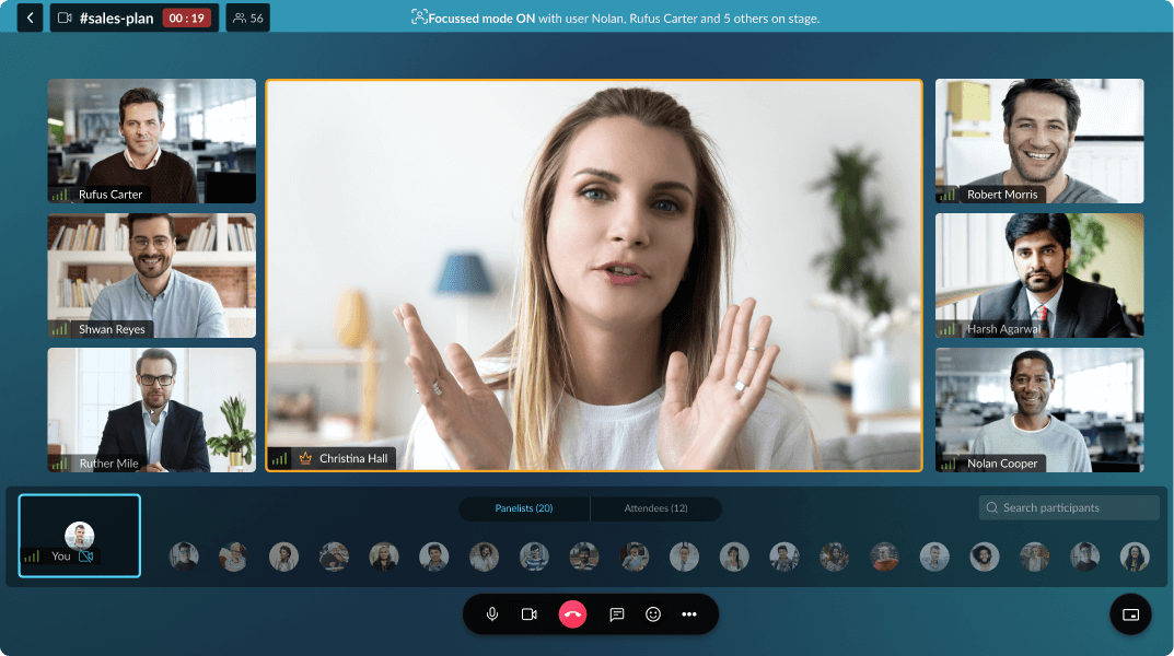 - Say if you are hosting a brainstorming session with 100 participants or less in such cases you would want everyone in the channel to interact, so there is no need to add panelists.