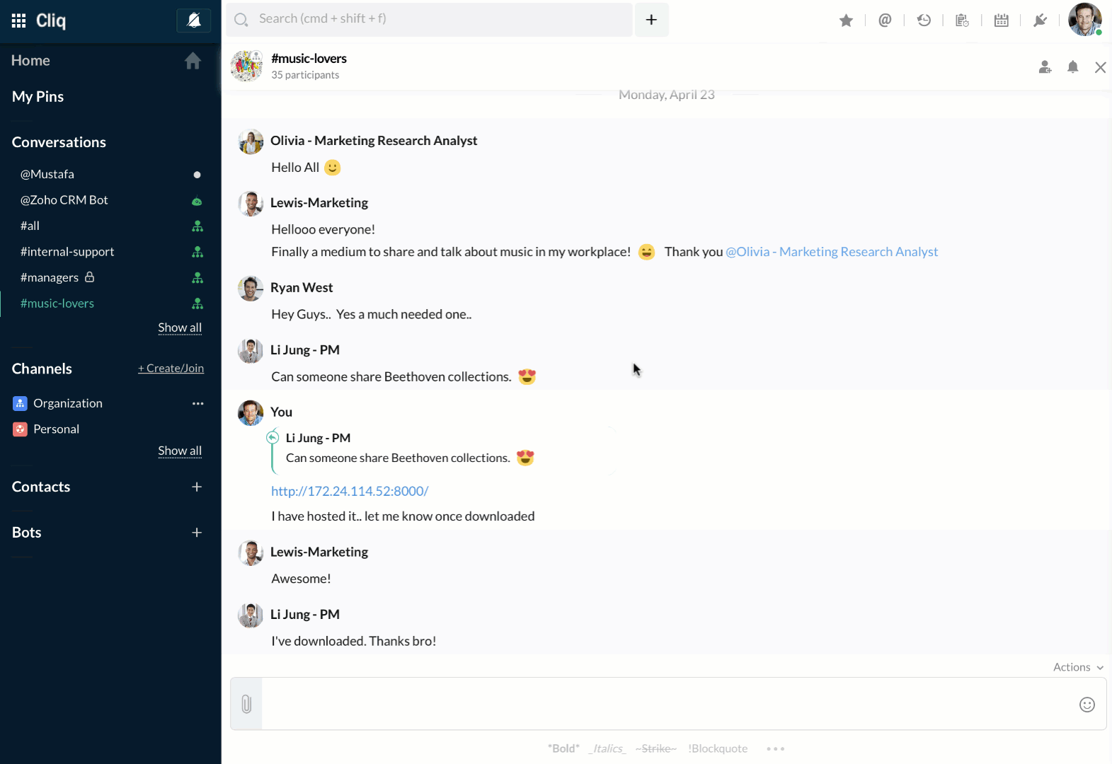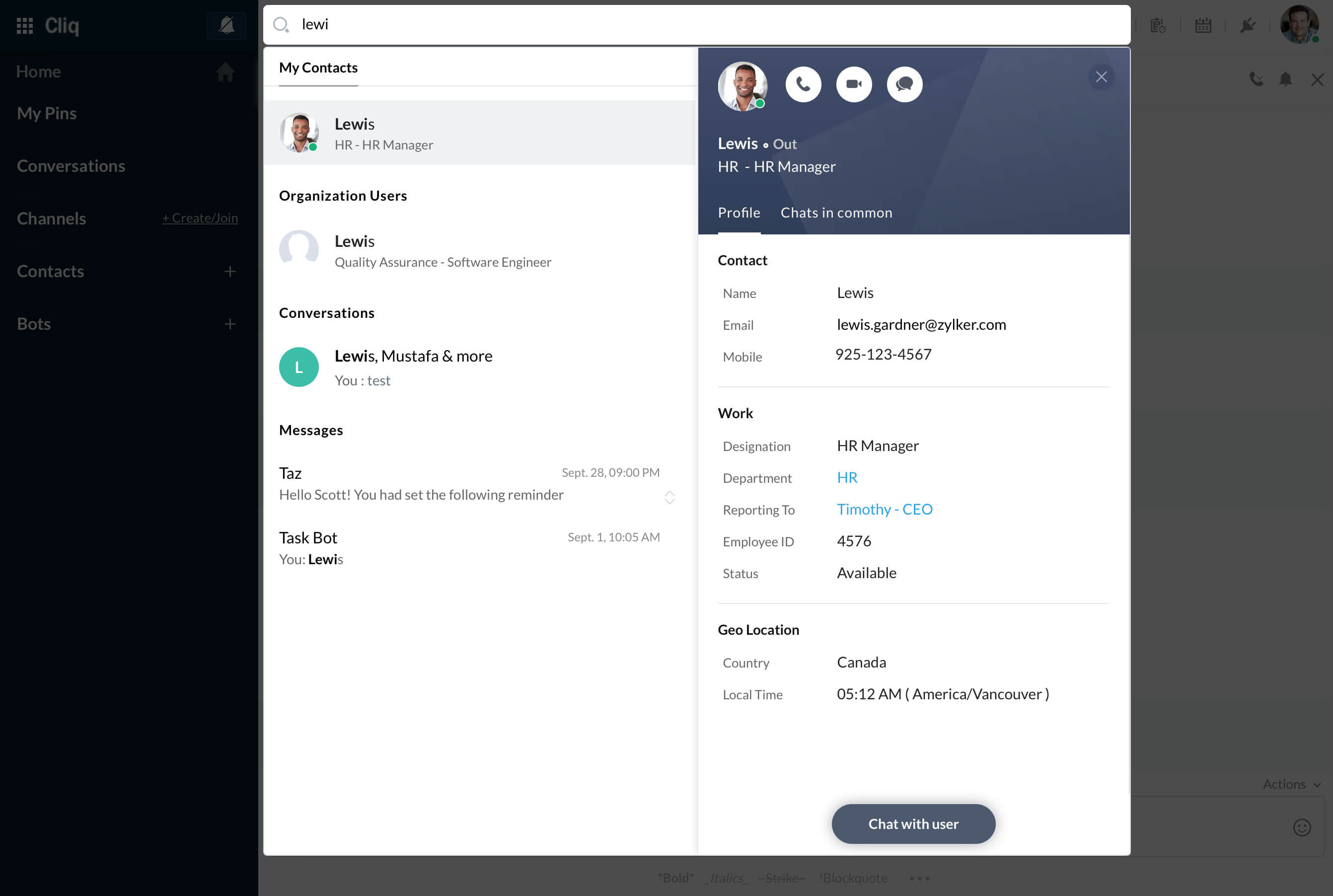 User info like department, mobile number, designation, ... are synced from Zoho People. To know more on how this sync can be helpful for your organization, check out our post in Zoho Cliq Community - Knowing People has its perks, even on Cliq.