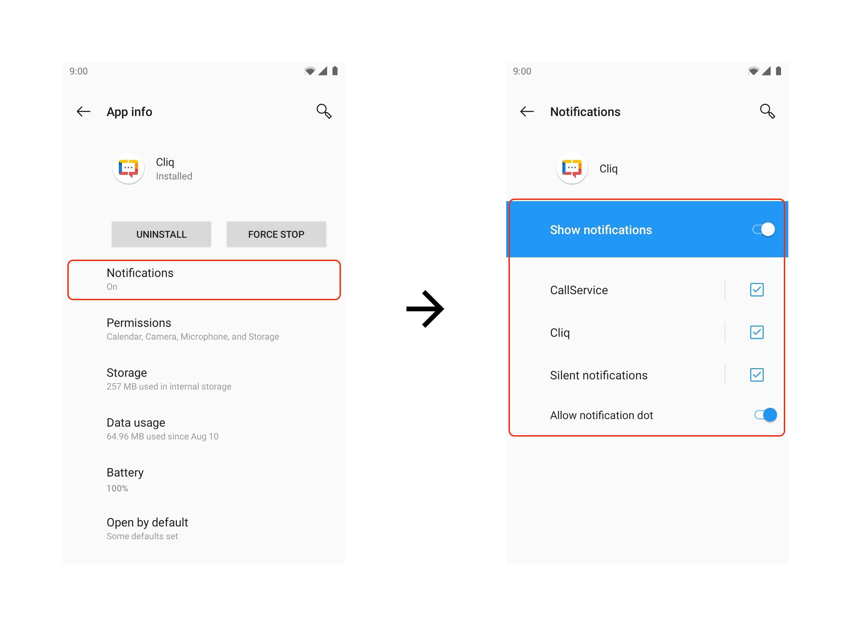 Step 1: Enable notification for Cliq in your phone settings