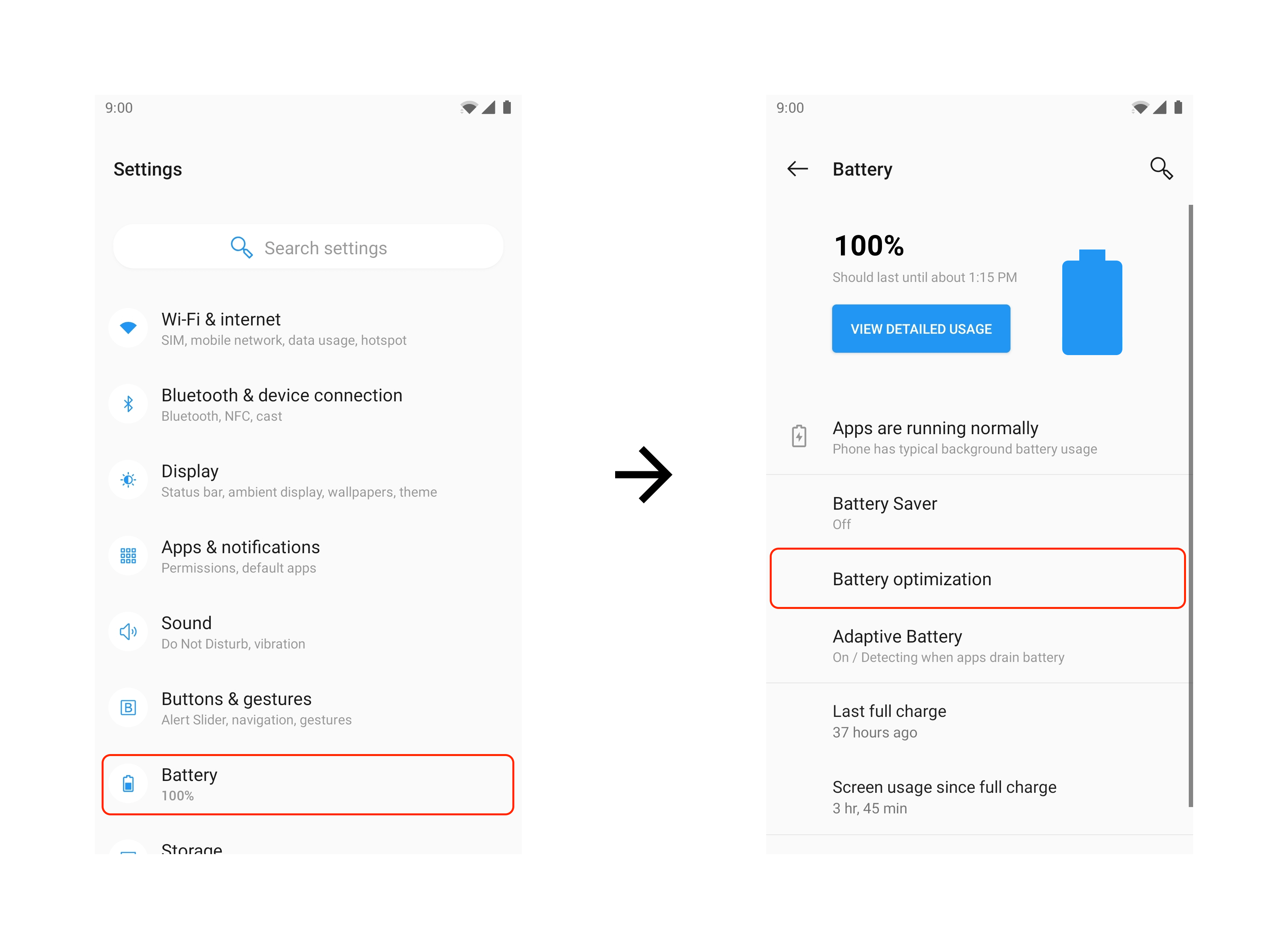 - Tap Battery -> Battery Optimization.
