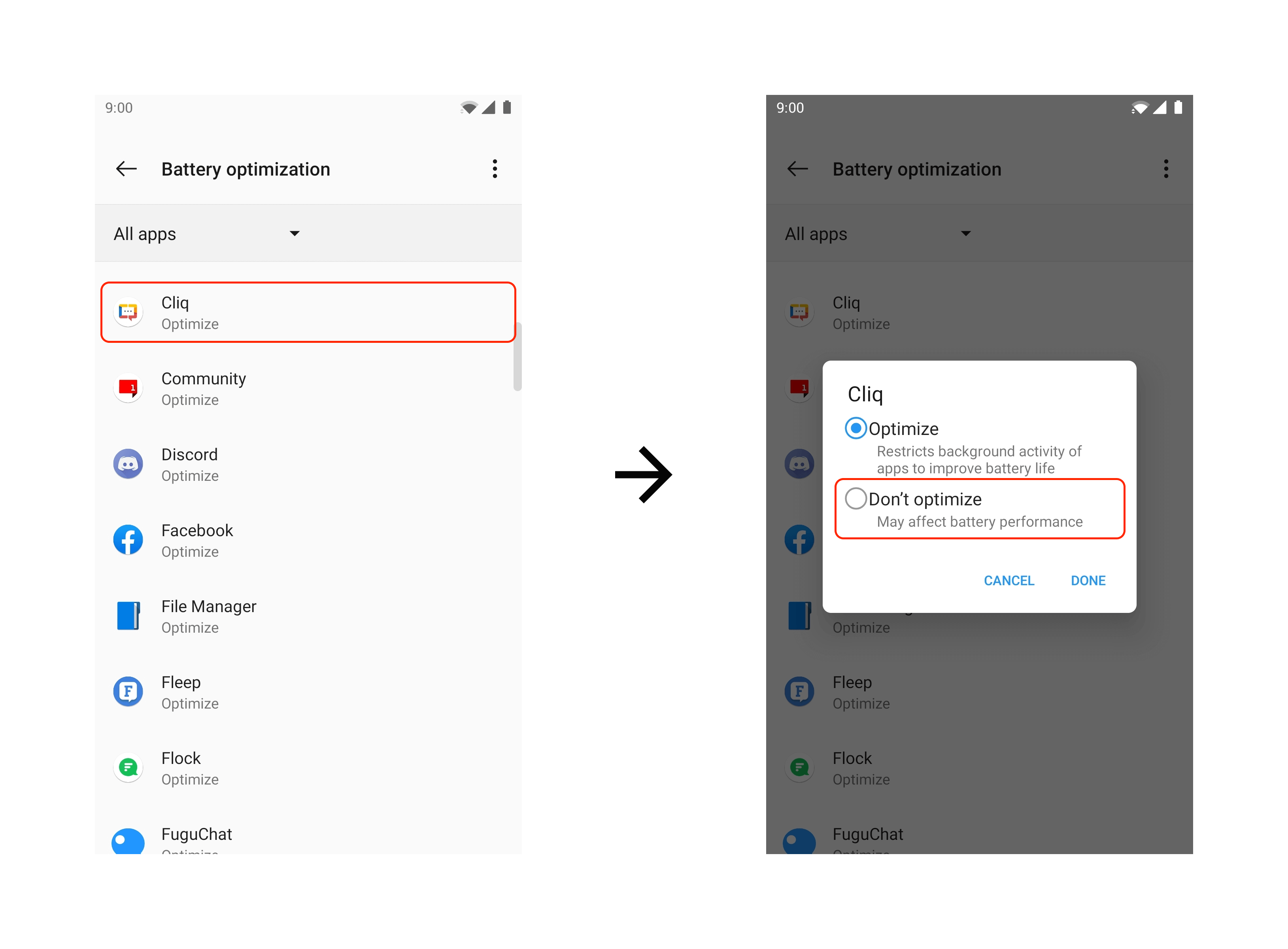 Step 3: Exclude Cliq from battery optimization