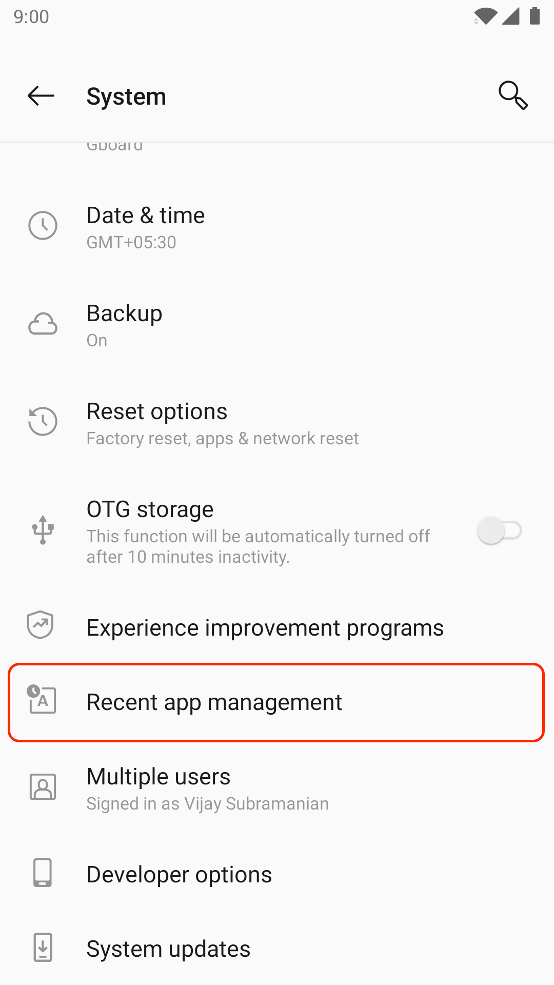 - Select Recent app management.