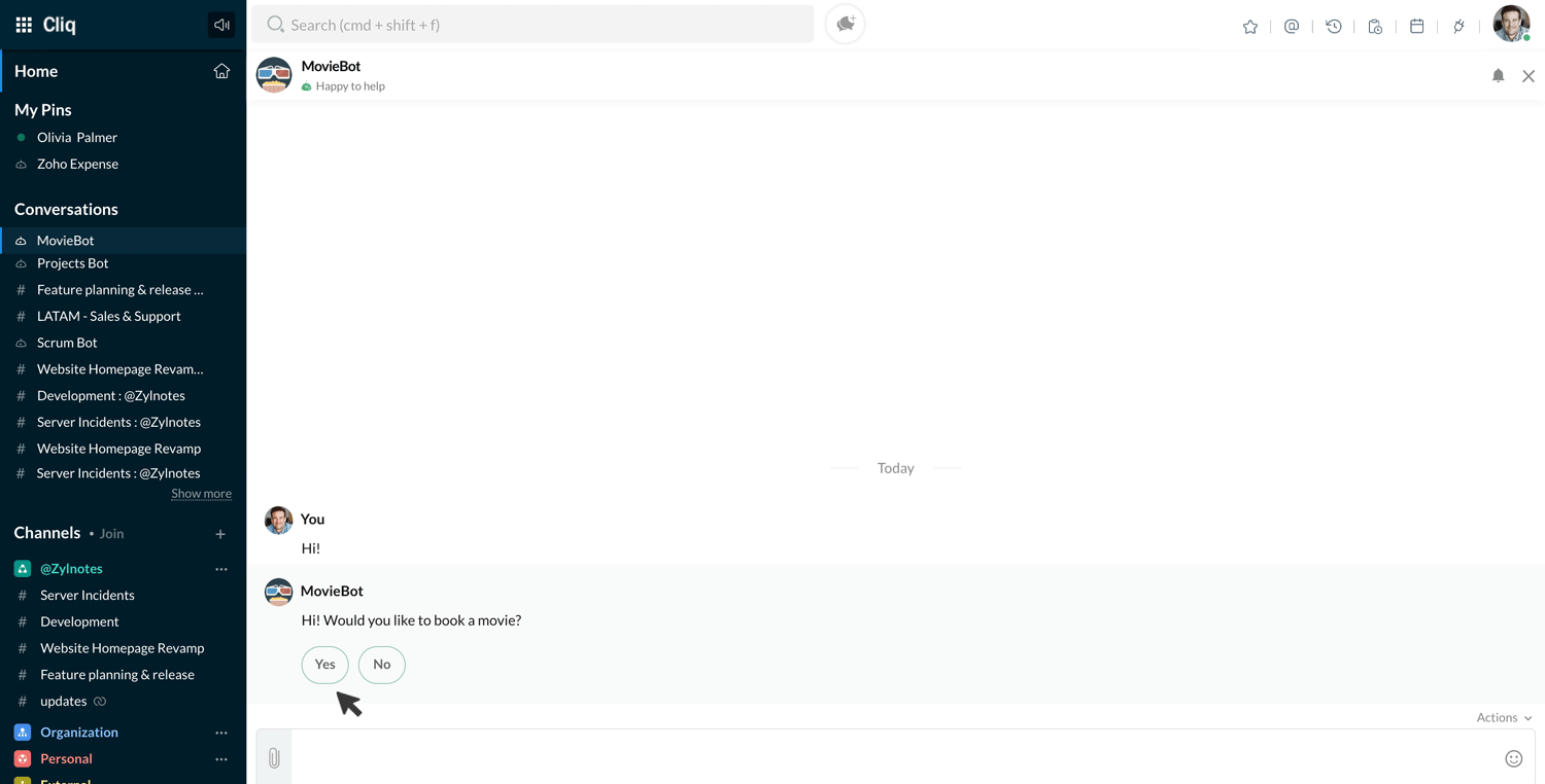 Cliq Bots - Building conversational bots with a series of questions and user inputs!