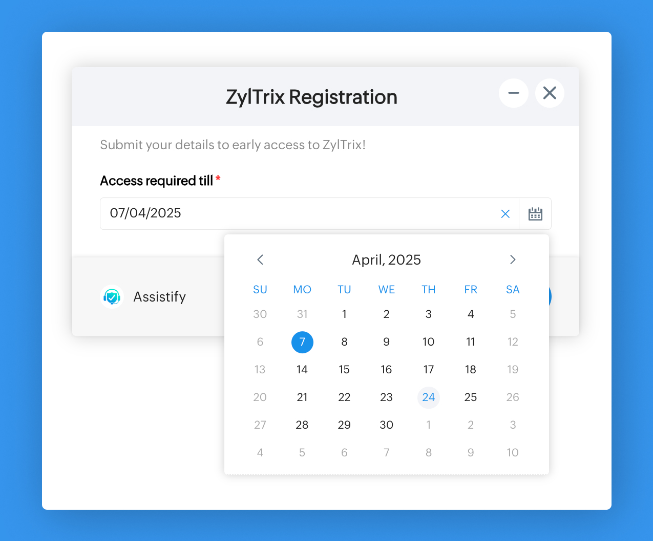 To manage date selections from the date picker, you can specify a date range and limit the selection to specific days of the week.