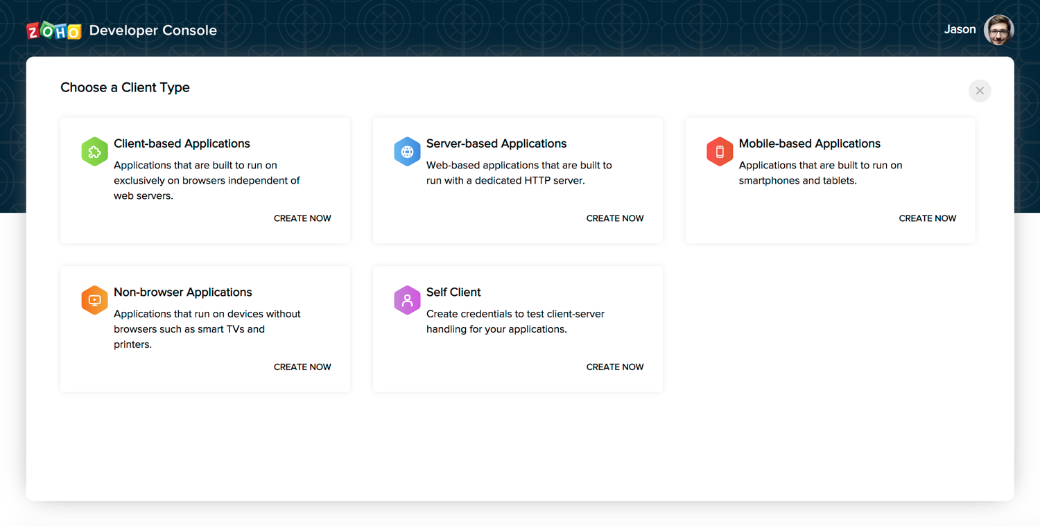 2. Choose the required Client Type. Learn more about them at the OAuth overview.