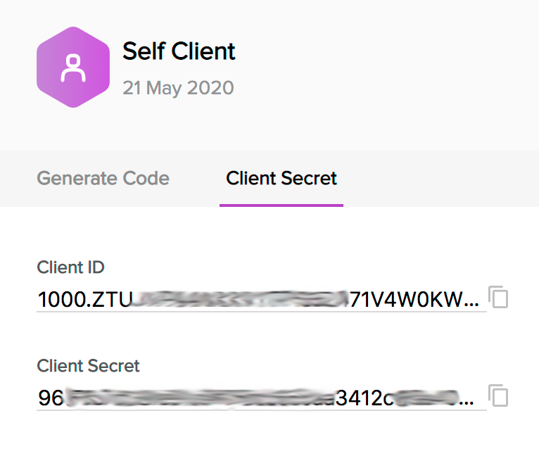 1. Go to http://api-console.zoho.com/ and register a self client.