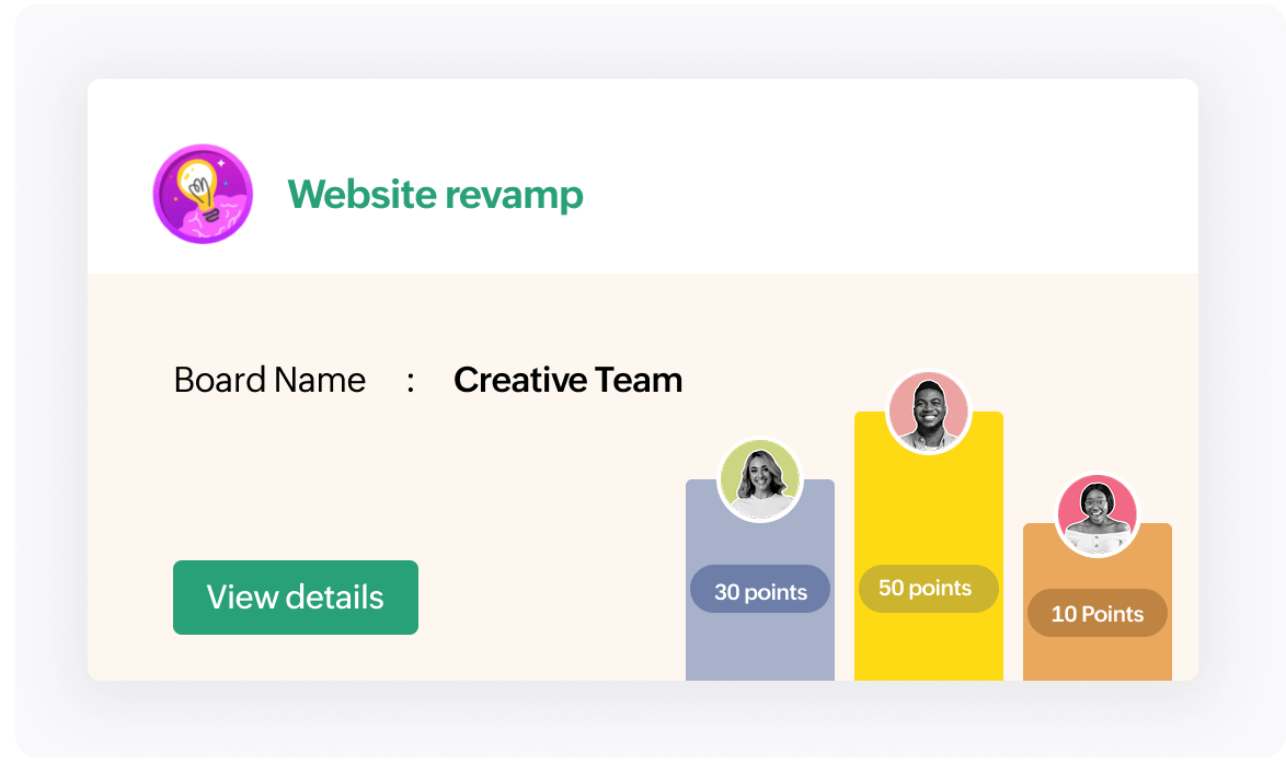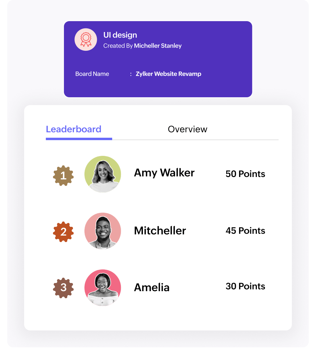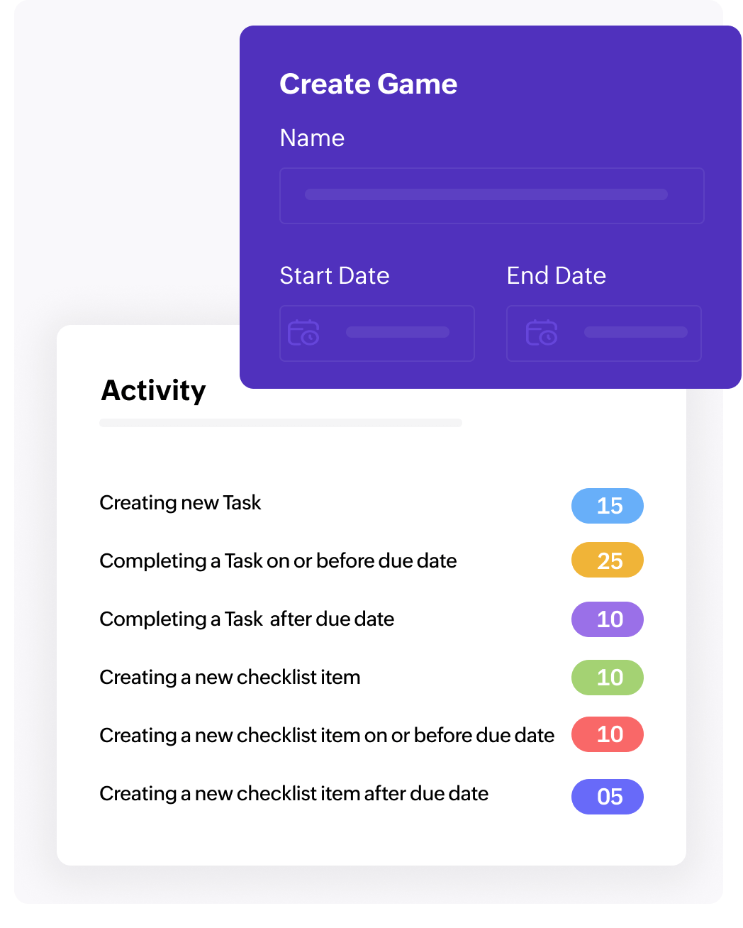 Build games using day-to-day actions like assigning, updating, or completing work. Employees earn points for these actions, making daily progress feel more rewarding and purposeful.