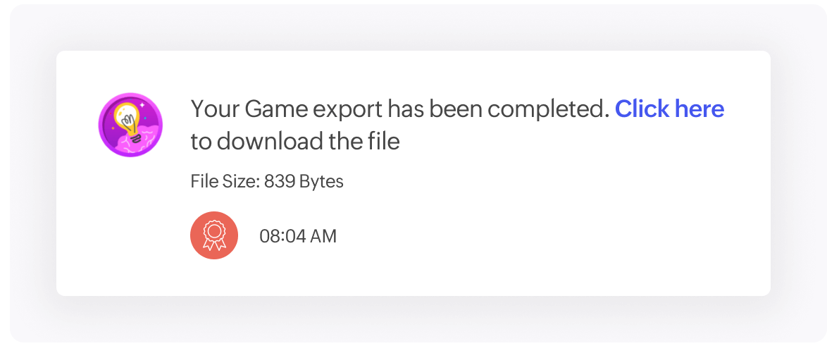 Export game data in .txt or .json format to review engagement, spot top performers, and keep improving how you gamify work.