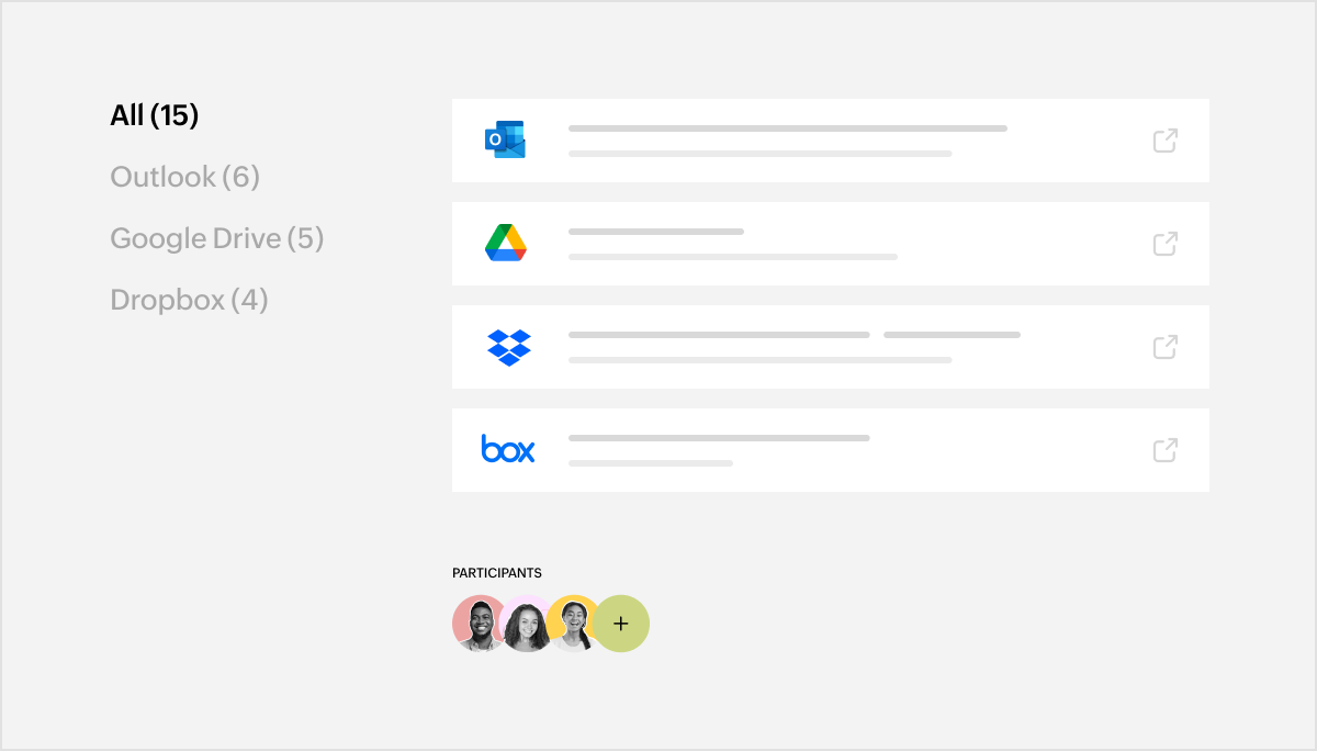 Easily connect your third-party service accounts within the platform, and watch your data easily become part of your search results.
