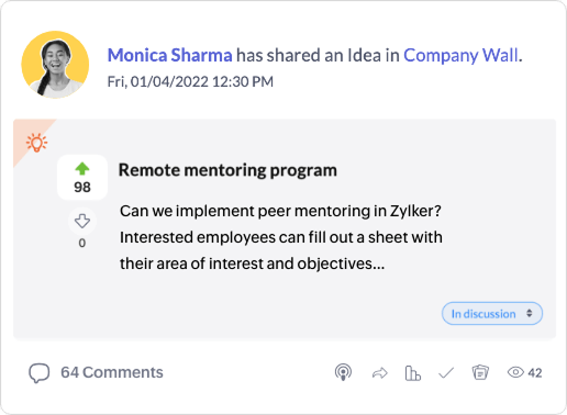 Beyond engagement, Zoho Connect brings built-in task tracking, file sharing, and project tools for real collaboration.