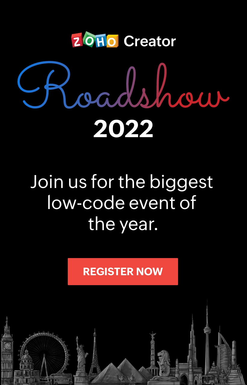 Zoho Creator is a custom app builder that uses low-code technology to help you develop business apps faster and more efficiently than traditional methods. To achieve speed and accuracy, Zoho Creator uses a combination of drag-and-drop interfaces, point-and-click configurations, and a host of pre-built blocks of code that you can use to create your workflows. All these features simplify the app-building process while enabling non-programmers to create functional apps and catering to their requirements.