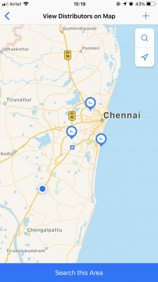 The map report is generated based on an address field—in this app it is based on the distributor’s address. We can also customize the map radius and filter records to be displayed.