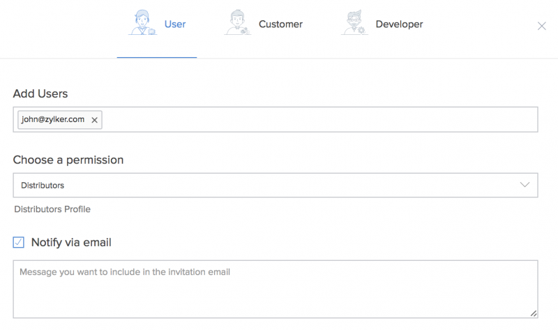 Zoho Creator has app sharing for three different profiles—user, customer, and developer.