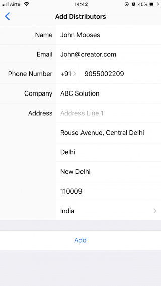 Just as in the previous step, we’ll create another form. This one will have fields, such as the name and location of the distributor, contact information, and their prices.