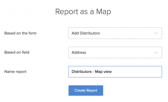 To create the map report, we’ll base the information on the distributors’ address. You can further customize the radius of the map so that only certain records are displayed.