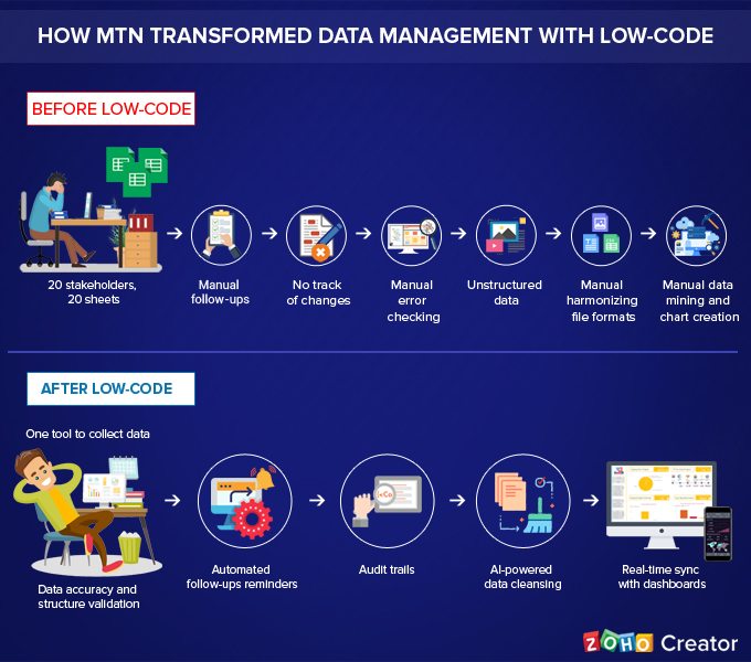 Every successful company, from Google to MTN, has found its competitive advantage in data. You, too, can gather, process, and analyze data, as it flows through your organization, with Zoho Creator.