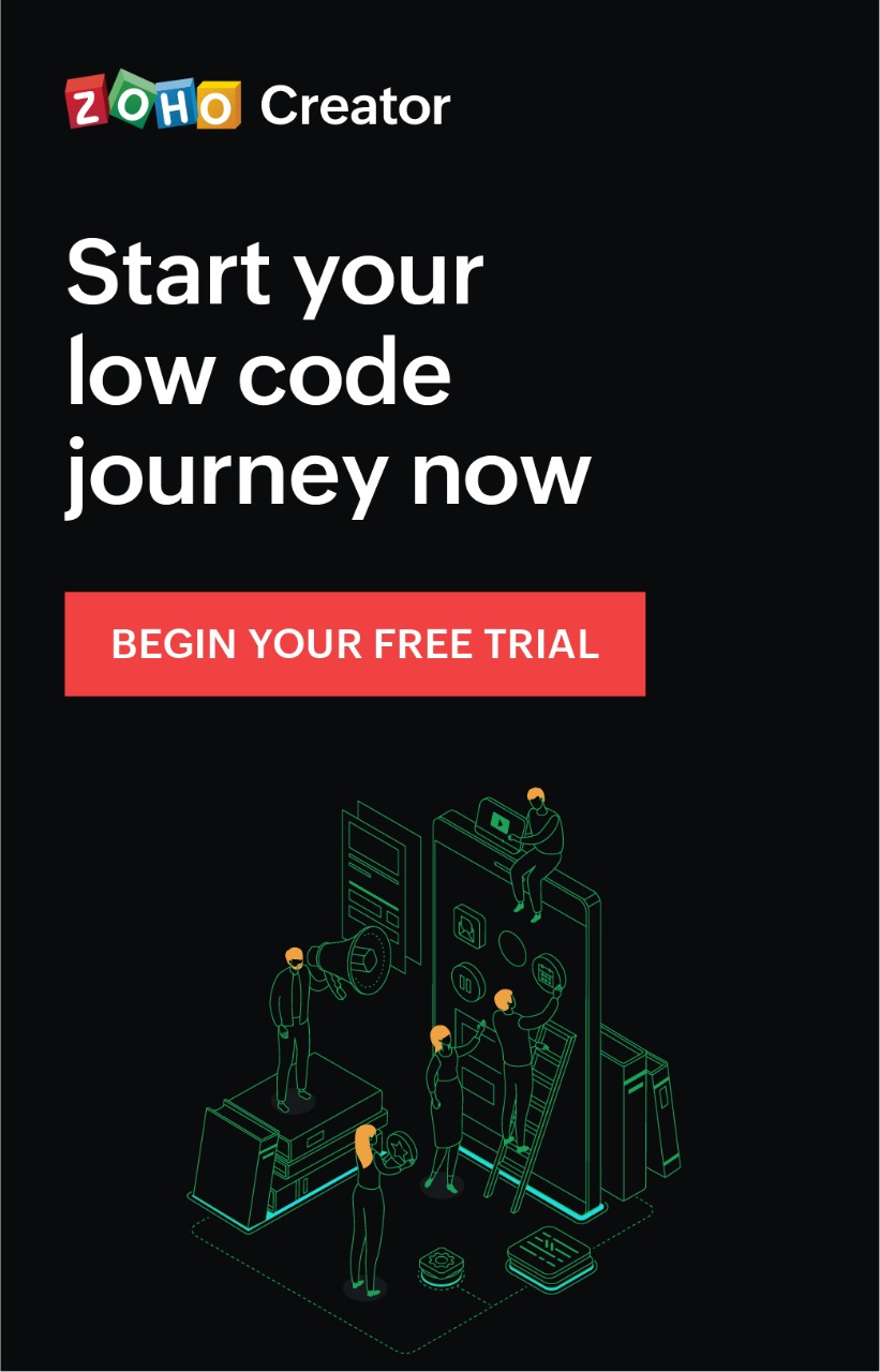 Zoho CreatorWith over 16 years of experience, Zoho Creator is a pioneer in the world of low-code. We empower users to build powerful solutions with minimal coding expertise. So, keep watching this space for all things low-code/digital transformation