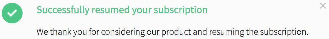 - If you've clicked Resume Subscription, you'll be notified that your subscription has resumed successfully.