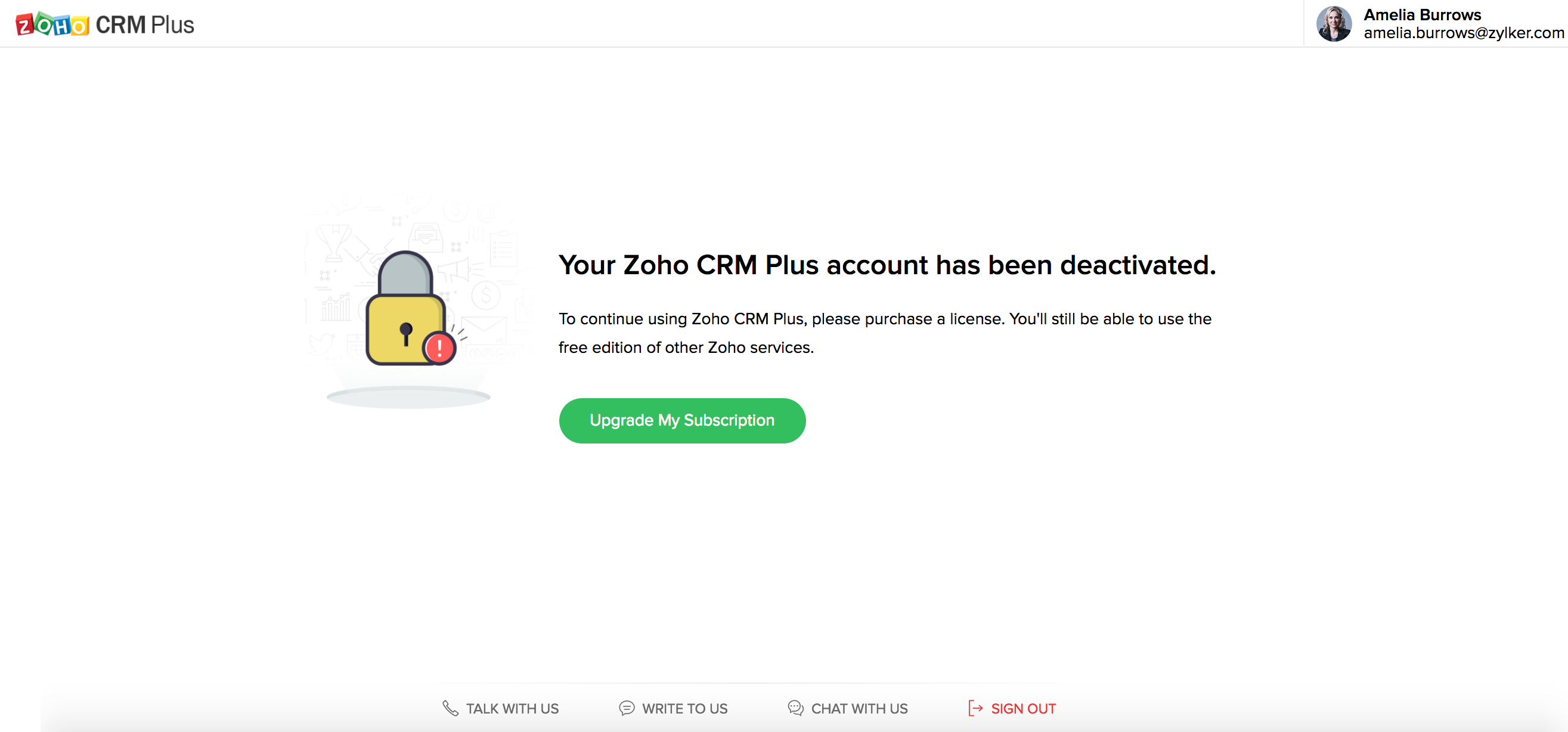 - You can reactivate your subscription anytime by accessing your CRM Plus account and clicking the Upgrade My Subscription button.