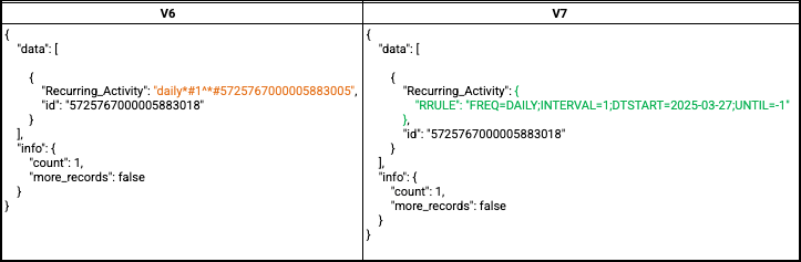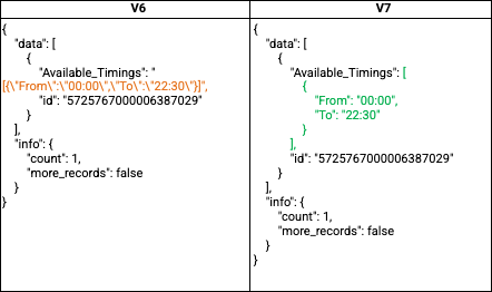 - A few response formats have been changed from V7 for certain data types, specific field types, and a dollar property.