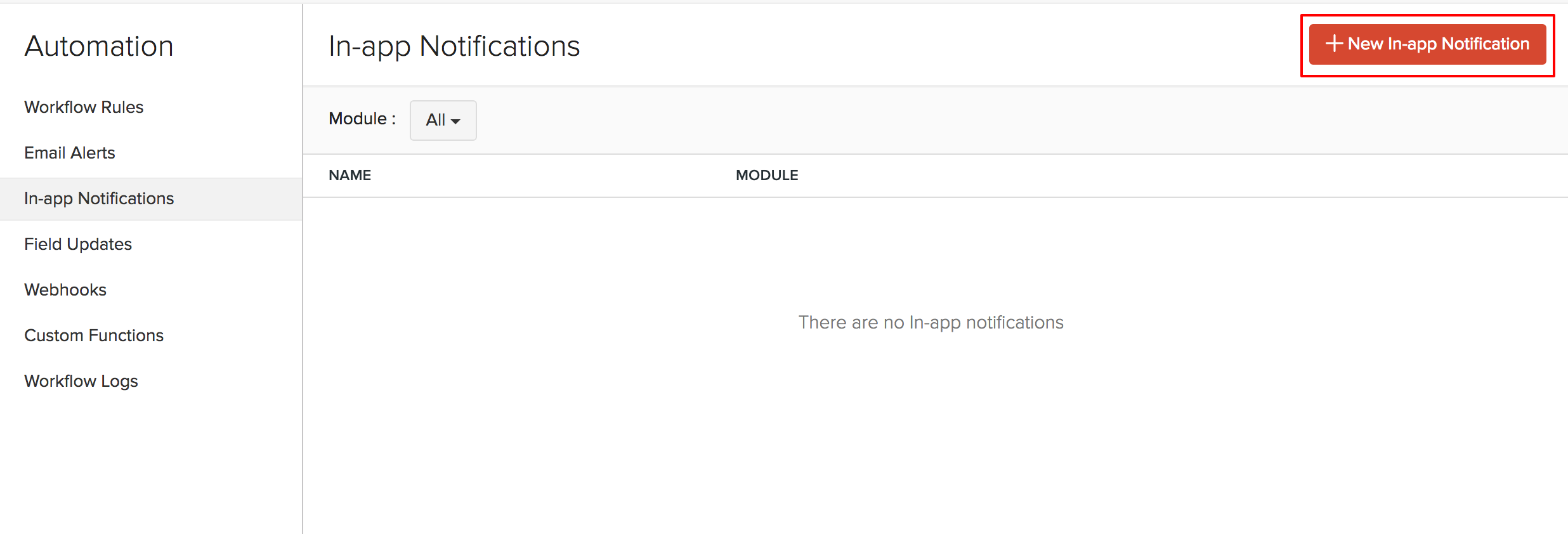 - Click the + New In-app Notification button on the top right corner.