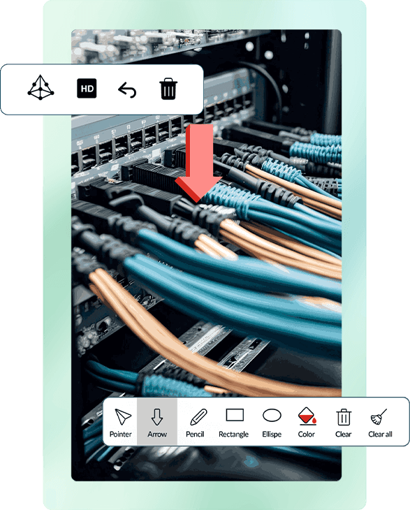 Enhance collaboration by marking exactly what matters. Agents can draw directly on the live video stream using arrows, shapes, and freehand tools to guide customers through complex tasks. Whether it’s machinery alignment or server configuration, AR annotations make instructions clear, visual, and actionable.