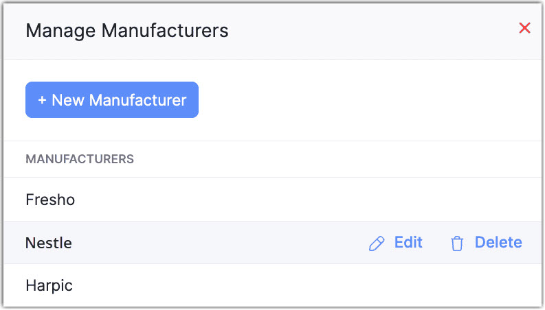 You can also Edit or Delete existing manufacturers from the drop-down list.