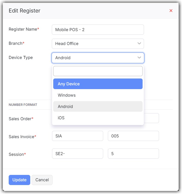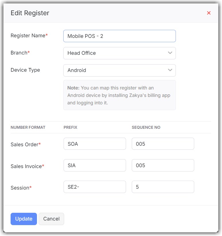- You cannot change the order and invoice prefix and sequence number while the register is open.