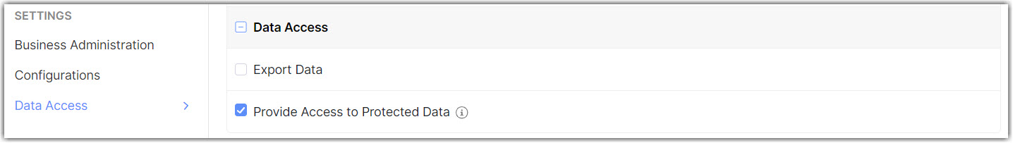 - Scroll to the Settings > Data Access section and enable or disable Provide access to protected data.