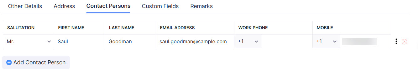 Contact Persons: An alternate point of contact for a customer in case the primary contact is unavailable.