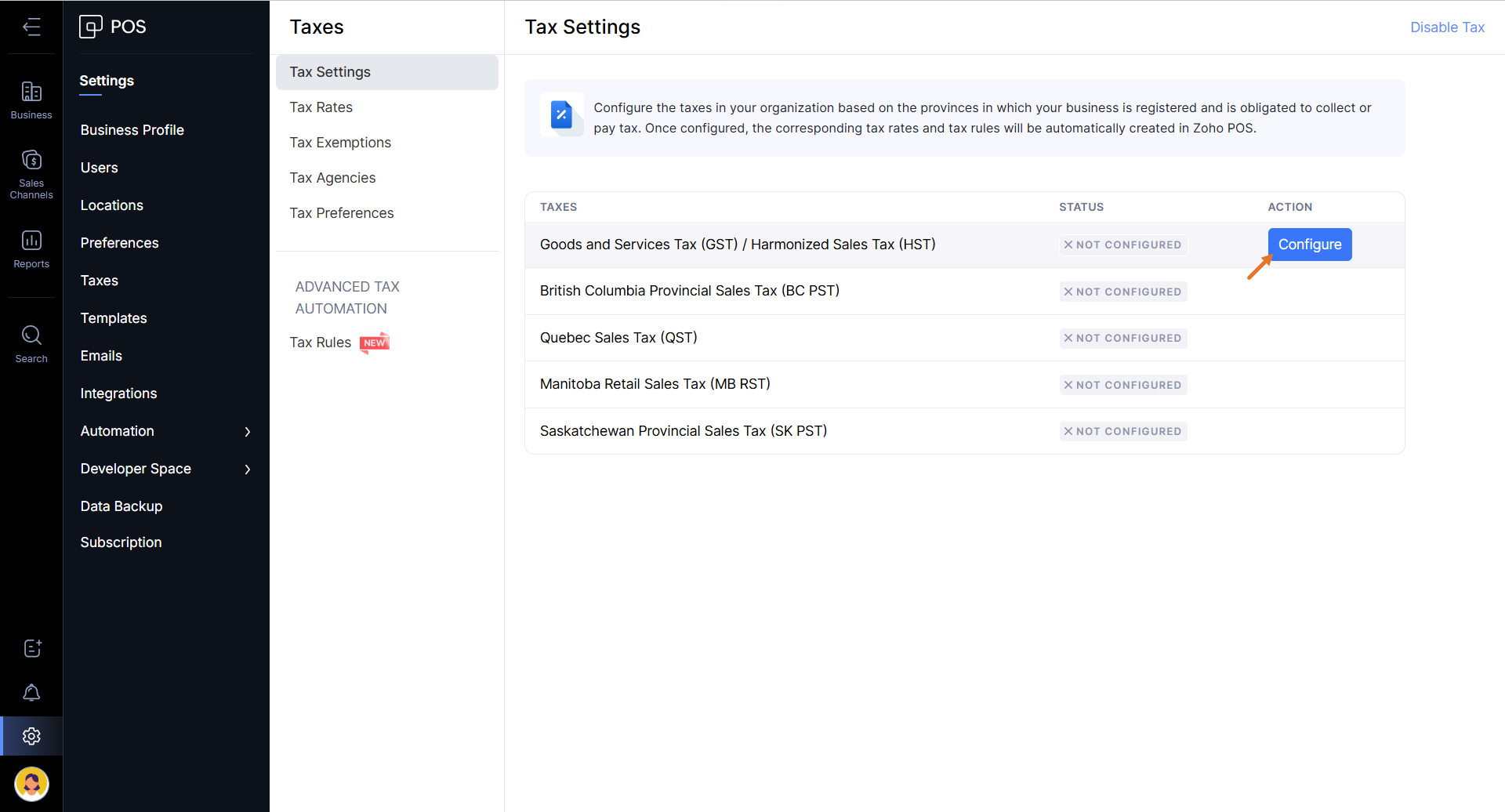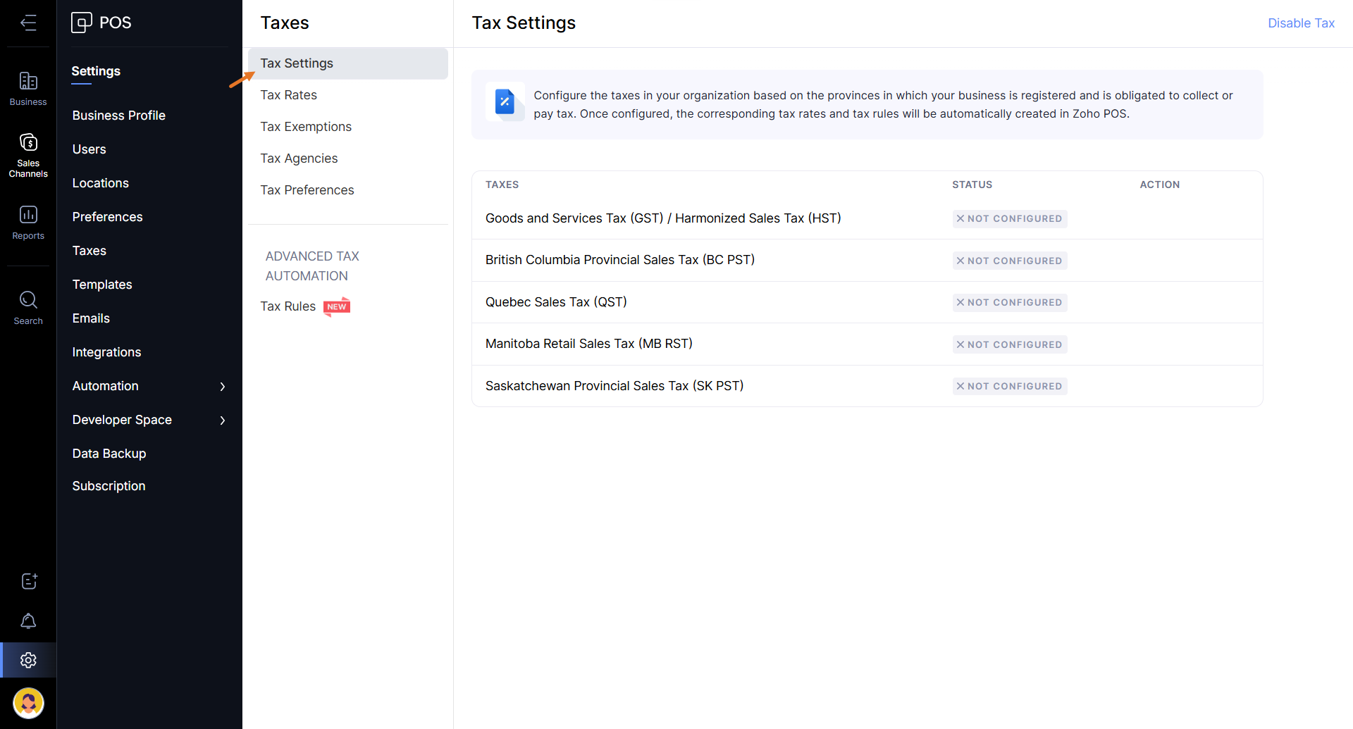 If you want to apply sales tax on your sales and purchases, you need to enable the sales tax option in Zoho POS and configure it based on your business requirement.