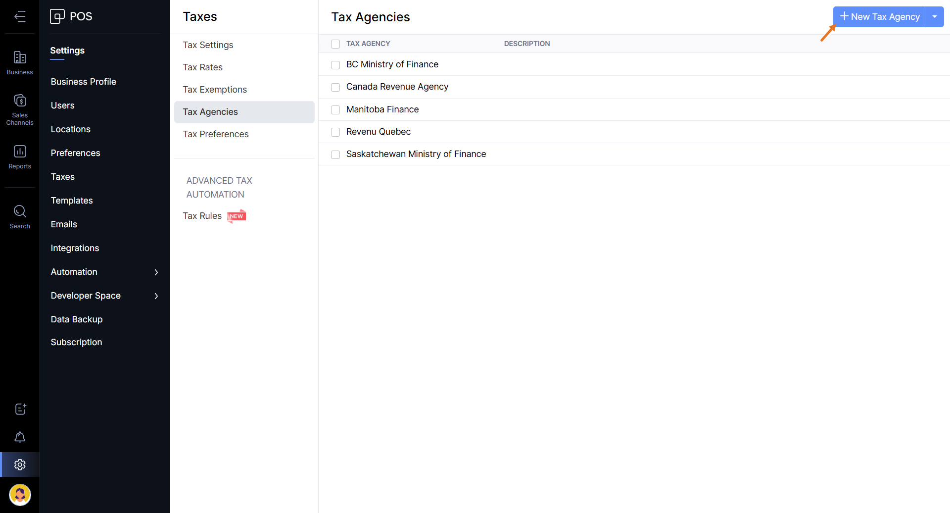 Tax agencies are government agencies that administer the sales taxes for their respective provinces.