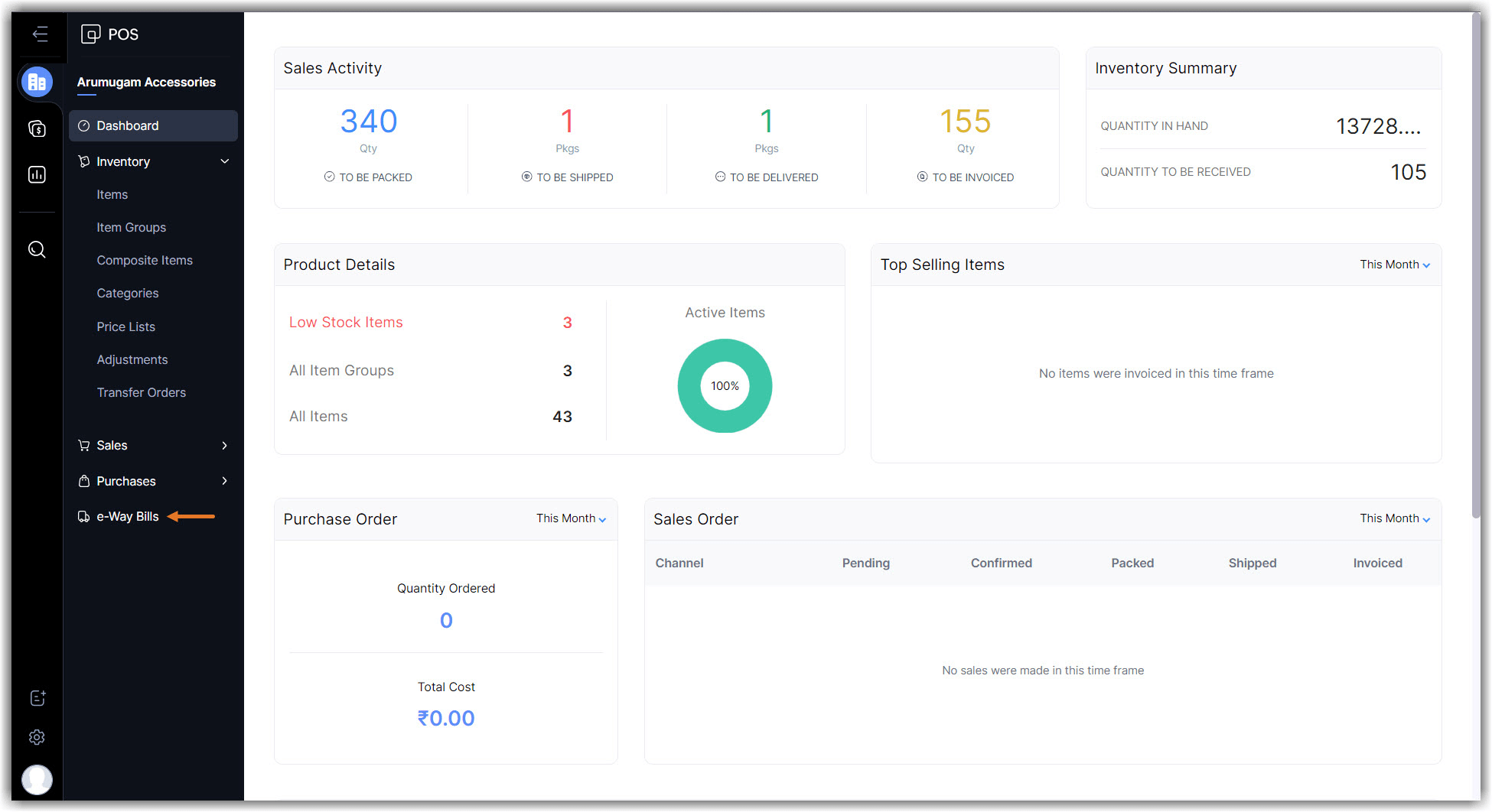 Navigate to the e-Way Bill module in the Business section.