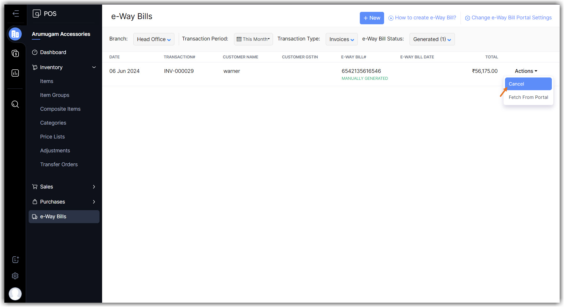 Cancel an e-Way bill