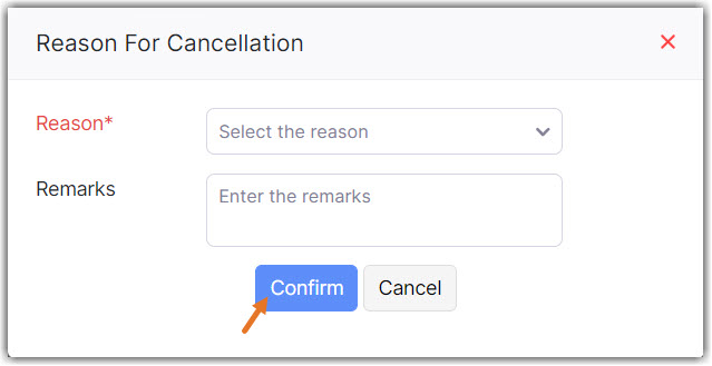 Select the reason for canceling the e-Way bill in the pop-up box and click Confirm to cancel the e-Way bill.