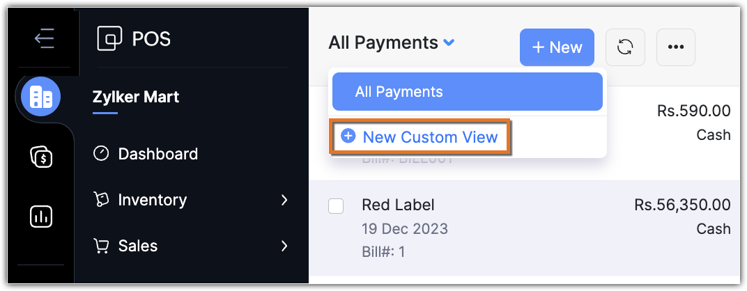 The list view helps you view all the payments that have been made. You can also create a list view based on your requirements.