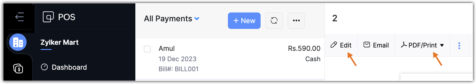 In the Payments Made module, you can select a record and click the Edit icon to make changes.