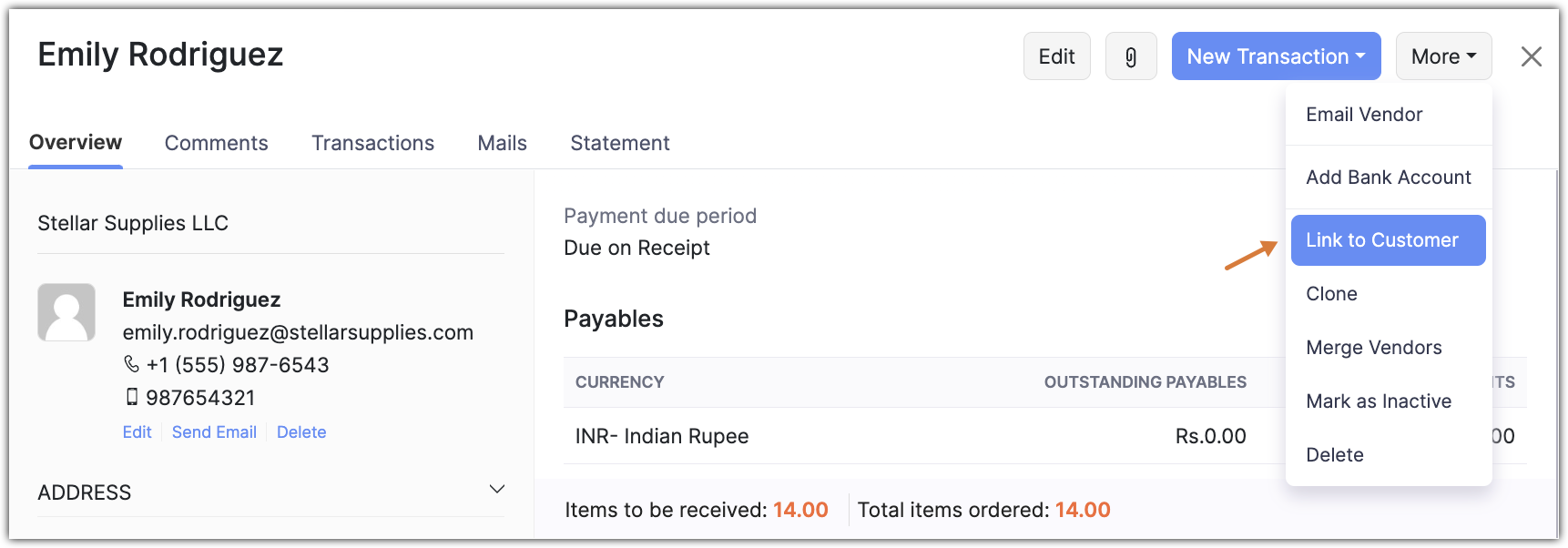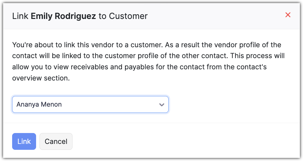 This option lets you create a relationship between a vendor and a customer. A retail store procures items from the vendor and the vendor in turn purchases some items from the retail store. So, in this case, the vendor is also a customer for the retail store. To manage all the transactions and monitor the outstanding receivables and payables, both the vendor and the customer can be interlinked.