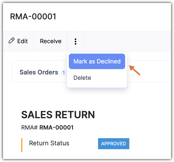 If a sales return request raised by the customer doesn't satisfy your company's return policy, it can be declined.