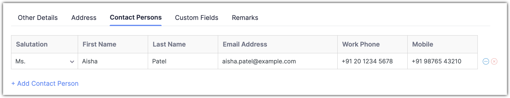 Click + Add Contact Person to add more contacts.