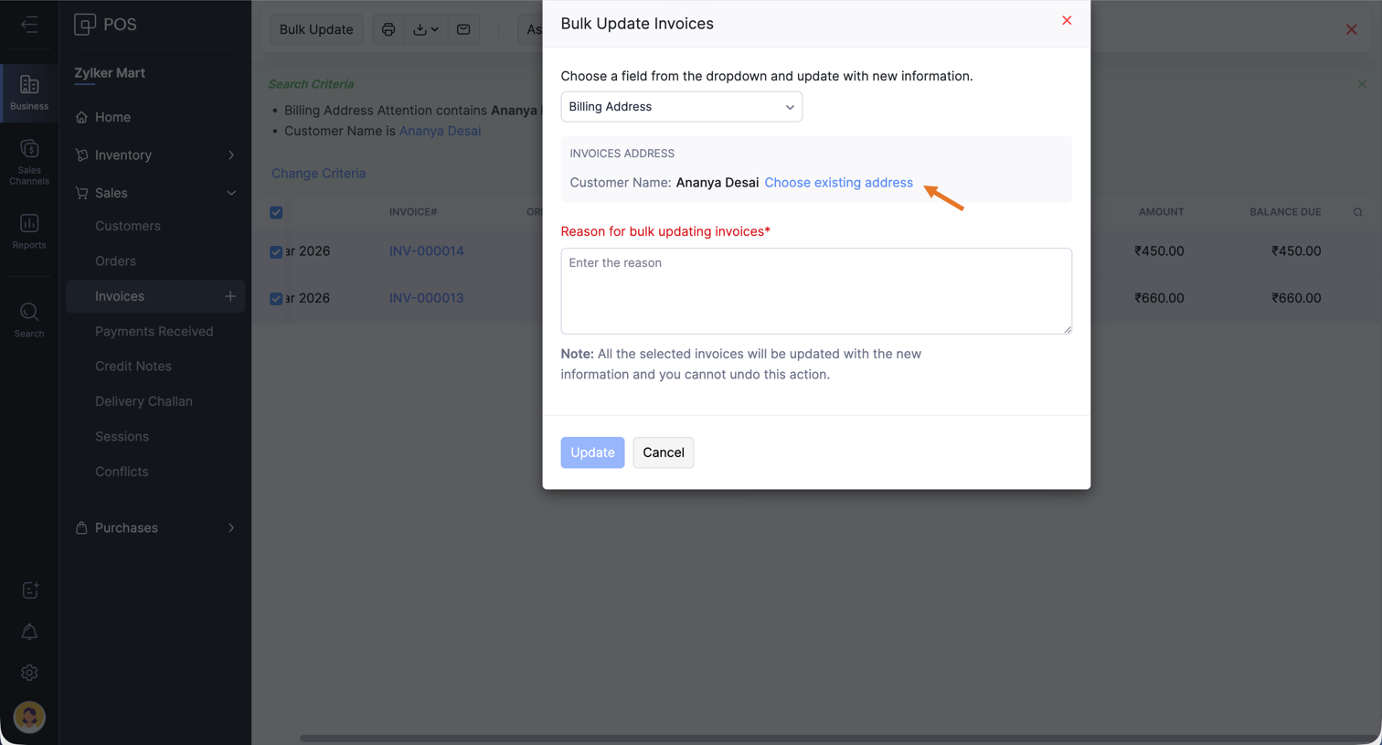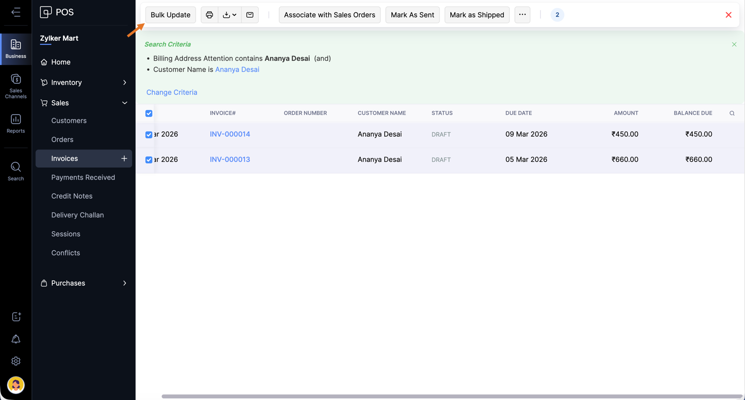 If you want to update more than 25 records at a time, you can do so by exporting the data as a CSV, XLS, or TSV file. Make the necessary changes to the required fields, then import it back into Zoho POS.