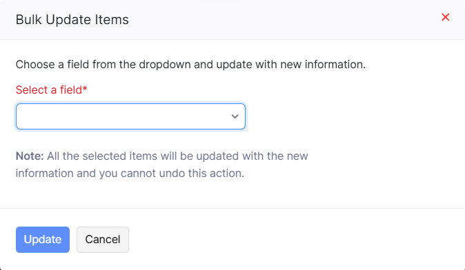 In the Bulk Update Items pop-up, choose the field by clicking Select a field.