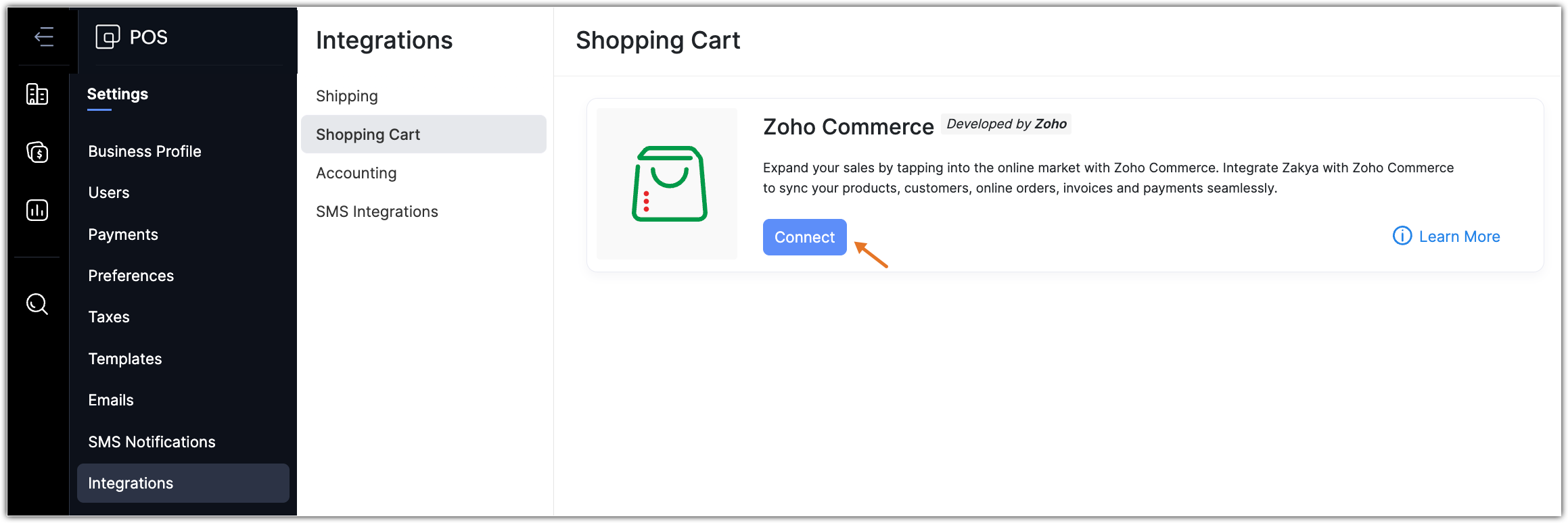 To integrate with Zoho Commerce